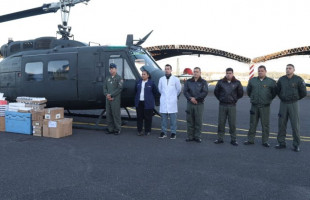El contingente de asistencia humanitaria partió a las 07:00 horas de hoy desde la Primera Brigada de la Fuerza Aérea Paraguaya, donde se constituyó por unos minutos el presidente de la República, Santiago Peña.